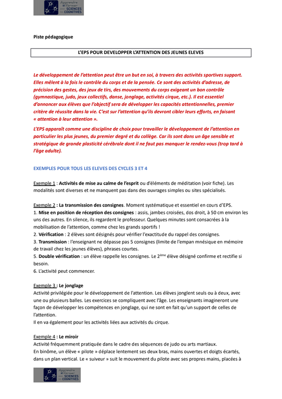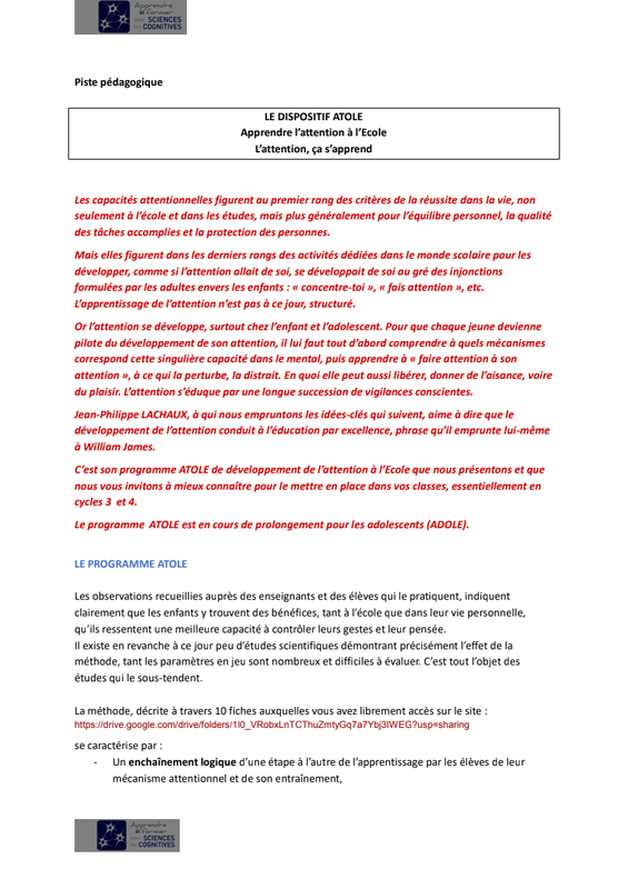Attention Leps Pour Developper L Attention Des Jeunes Élèves