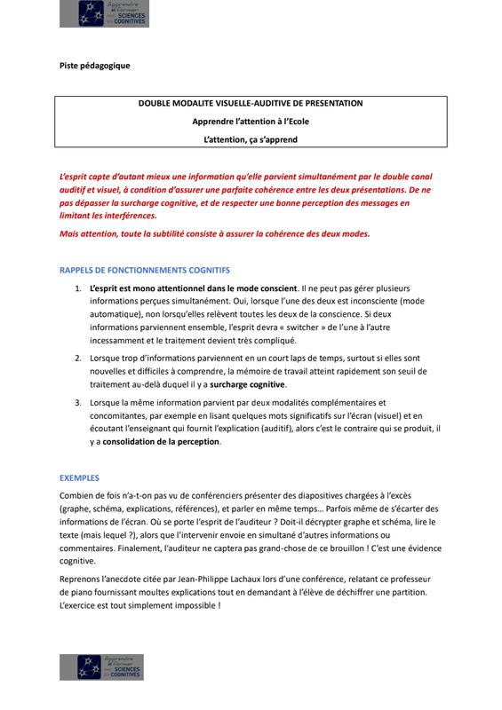 Attention Double Modalite Visuel Le Auditive De Présentation