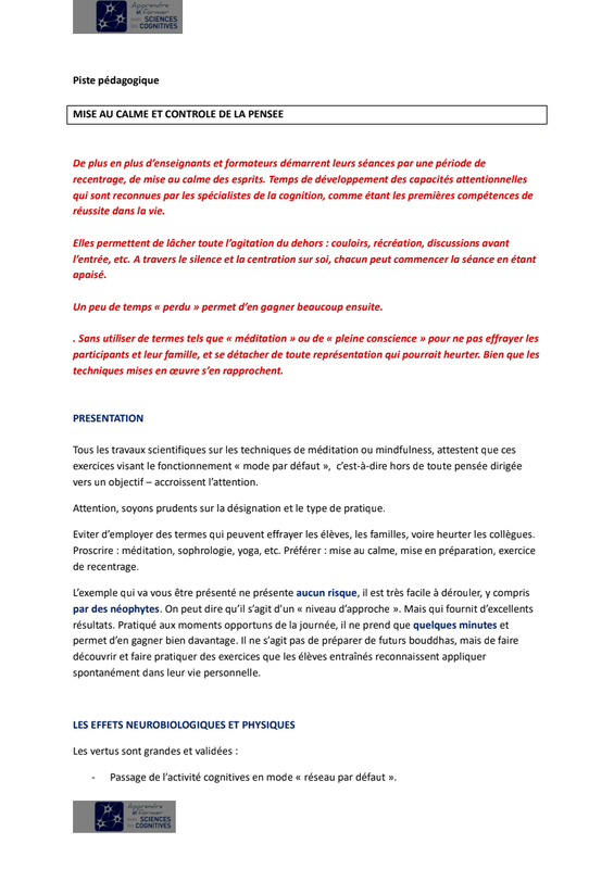 Attention Mise Au Calme Et Contrôle De La Pensée
