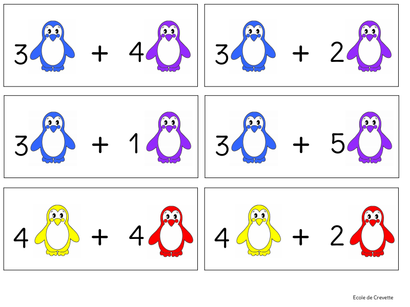Additions De Pingouins Cartes A Taches Sommes Inferieures A 10