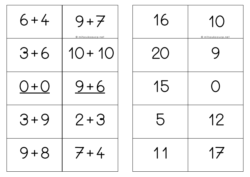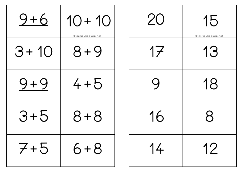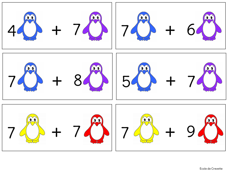 Additions De Pingouins Cartes A Taches Sommes Superieures A 10