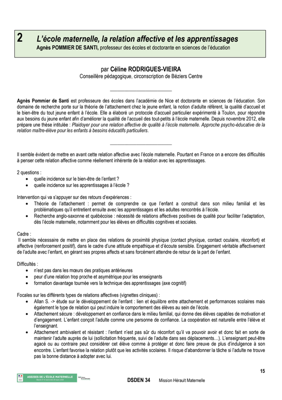 L'école Maternelle La Relation Affective Et Les Apprentissages