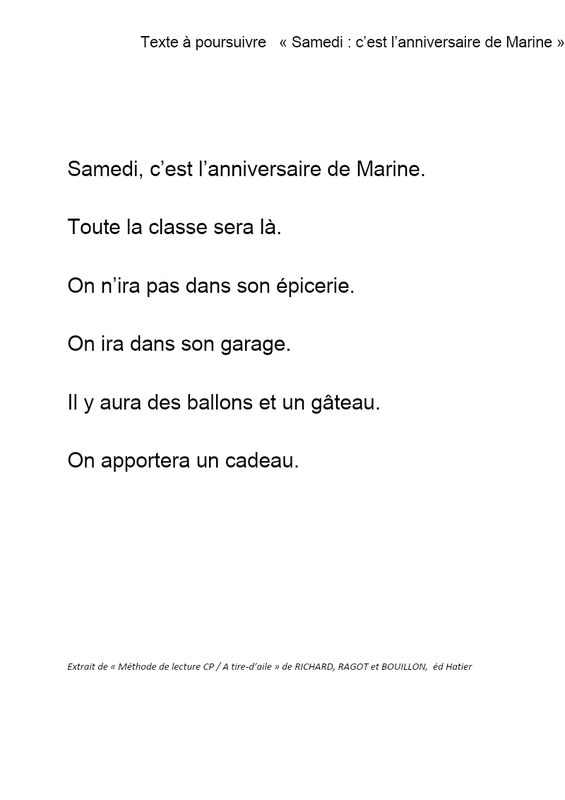 Annexe P5 Semaine 3 Texte À Poursuivre L'Anniversaire