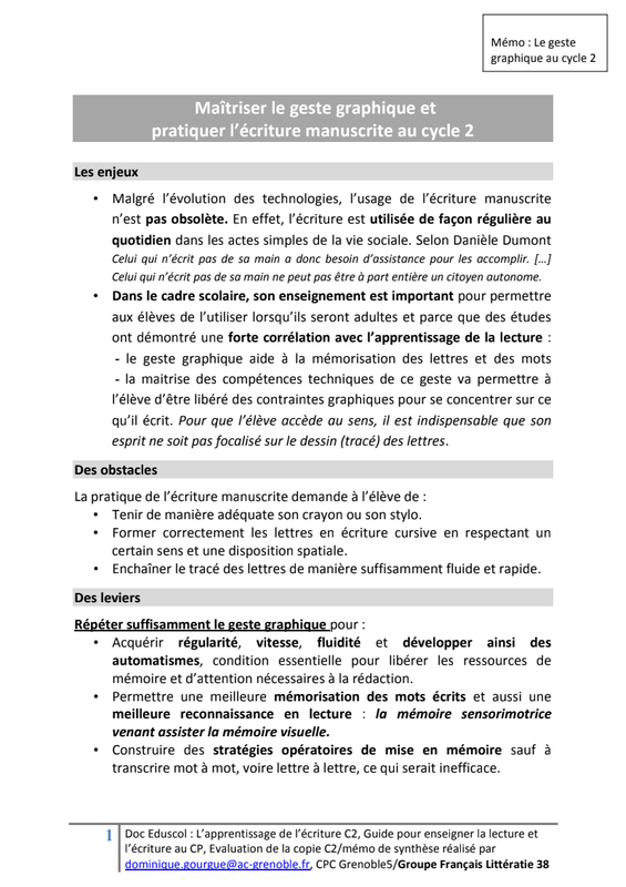 Memo Geste Graphique Cycle 2