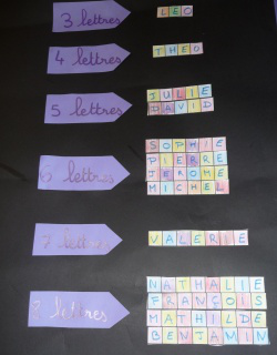 Prénoms en casesCette activité a pour but d’aider les élèves à faire la différence entre les notions de lettres et de mots à partir de leur prénom.