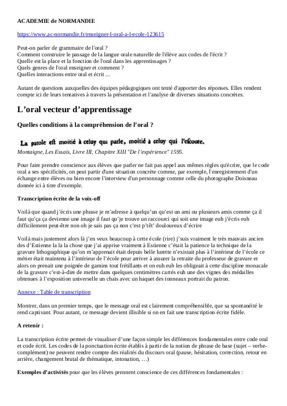 Ac Normandie Enseigner Oral Exemples Mise En Oeuvre