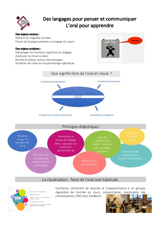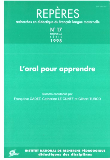 L'oral pour apprendre ; évolution dans le champ de la didactique - Persée