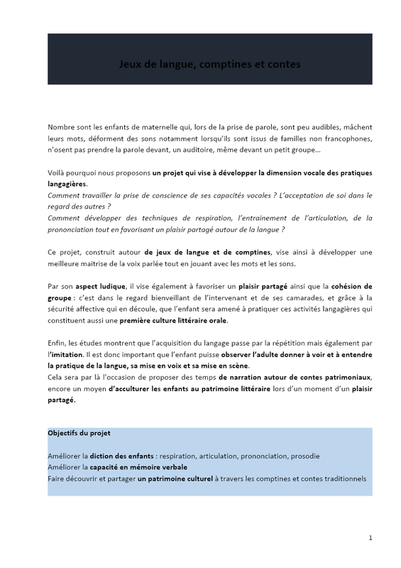 Jeux De Langue , Comptines Et Contes
