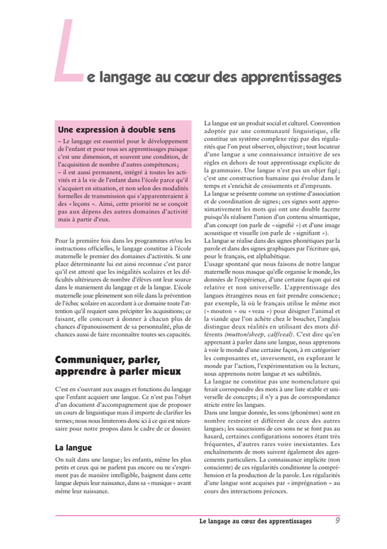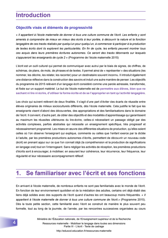 Langage Ecrit Cadrage Se Familiariser Fonctions