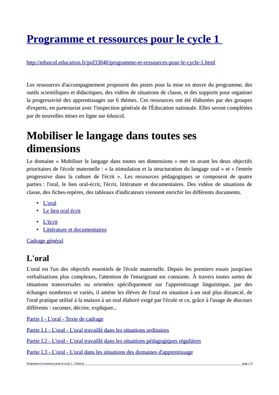 Programme Et Ressources Eduscol Pour Le Cycle 1
