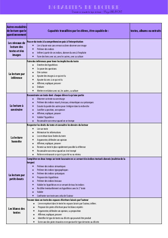Tableau Modalites De Lecture Bis