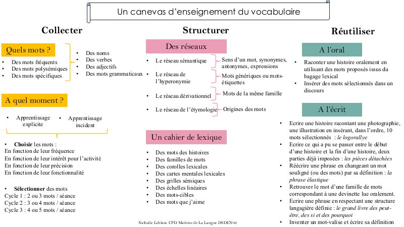 Voici une méthode pour développer le vocabulaire qui repose sur quelques modalités fortes :