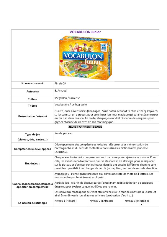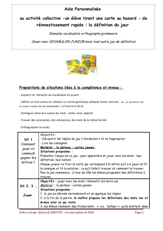 Activites Autour Du Jeu Vocabulon