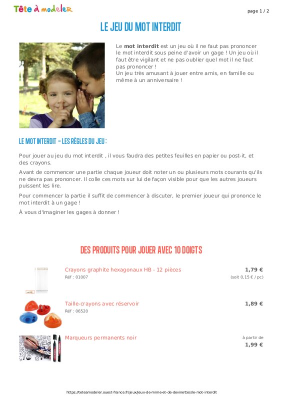 Jeu Du Mot Interdit Règle
