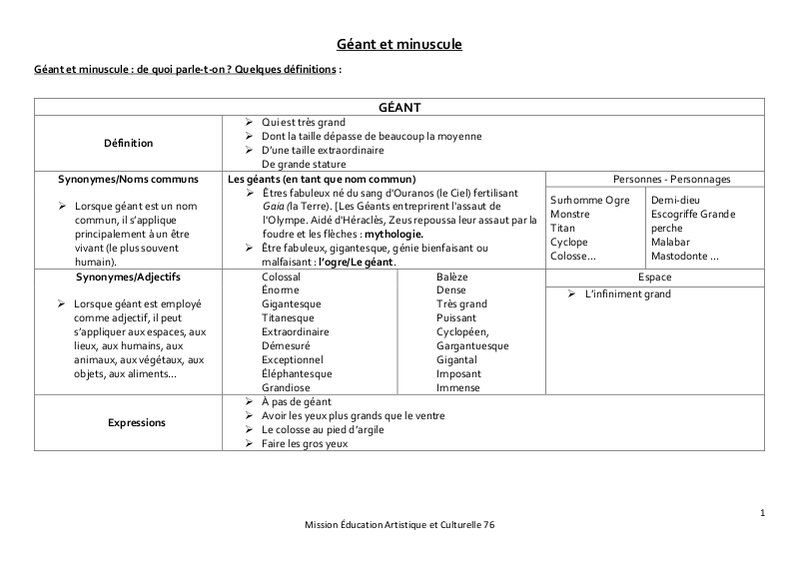 Definitions Geant Et Minuscule 2