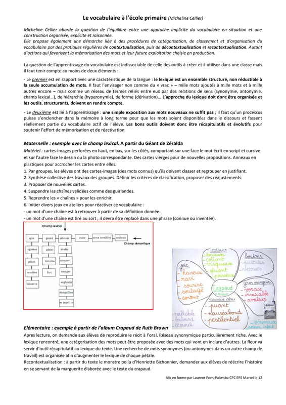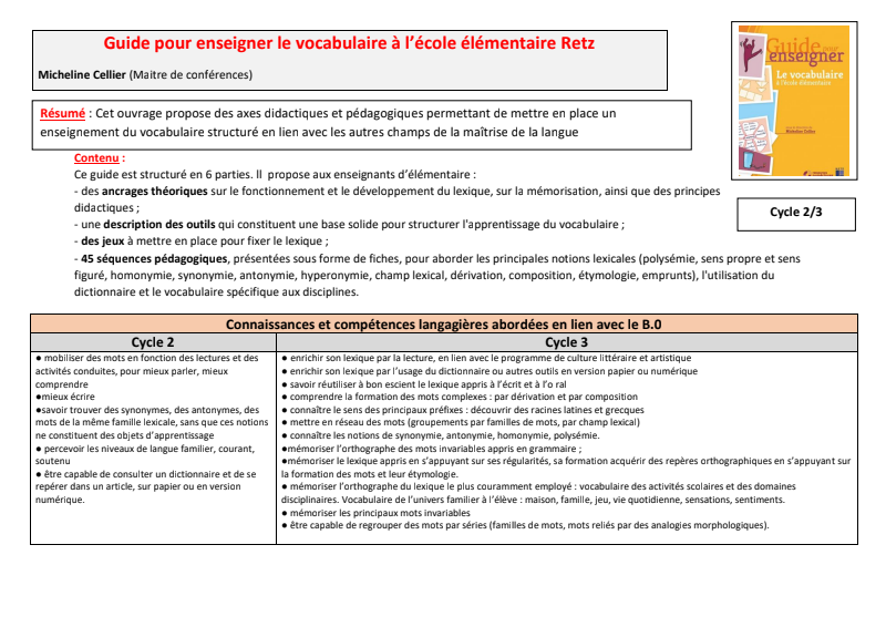Guide Pour Enseigner Le Vocabulaire À L'École Élémentaire