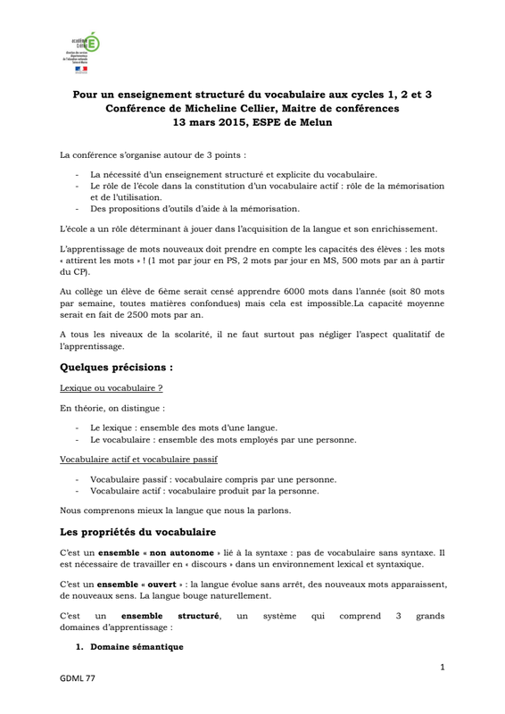 Guide Pour Enseigner Le Vocabulaire A L