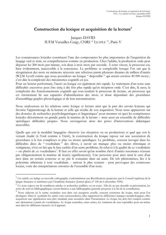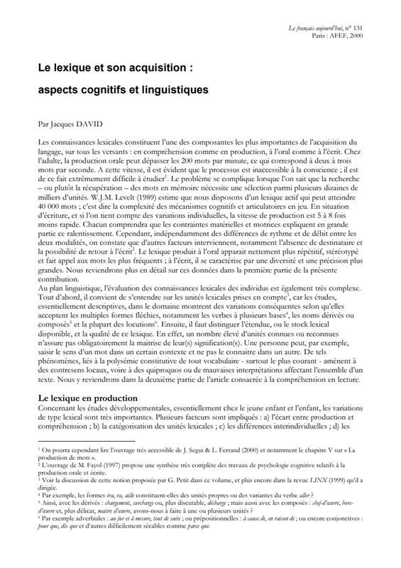 Gérard PETIT : «Didactique du lexique et problématique de l’unité lexicale : état d’une confusion»