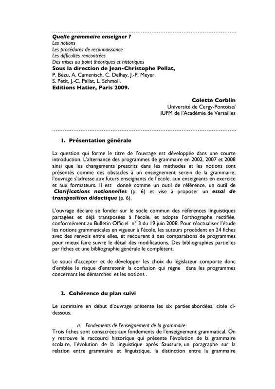 Jean-Christophe PELLAT : "Quelle grammaire enseigner?", 2017