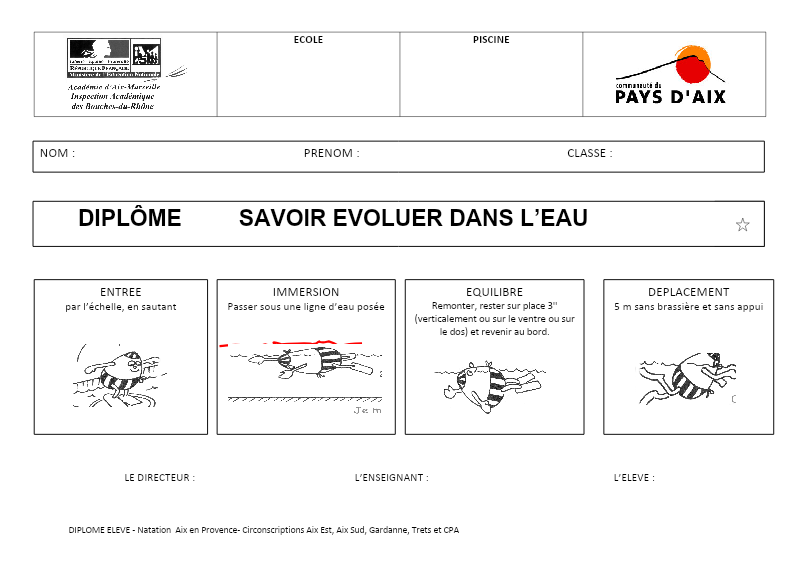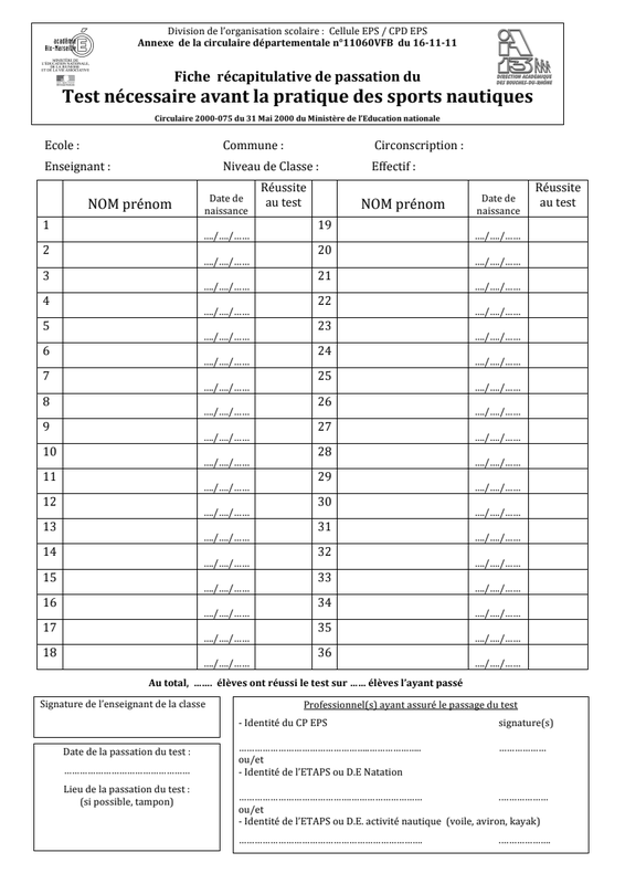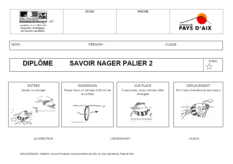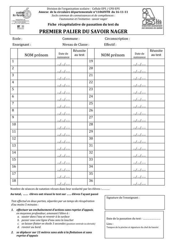 Fiche Da 13 Test 1Er Palier Savoir Nager 17 02 12