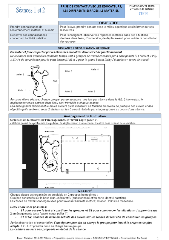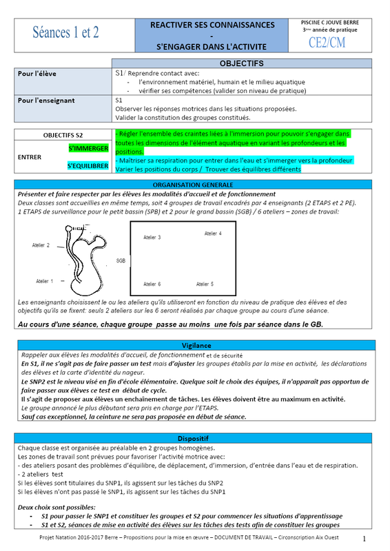 Projet Natation Berre Gs 2017