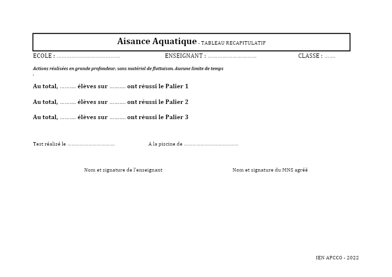 CYCLE 2 : Validation de l'AISANCE AQUATIQUE