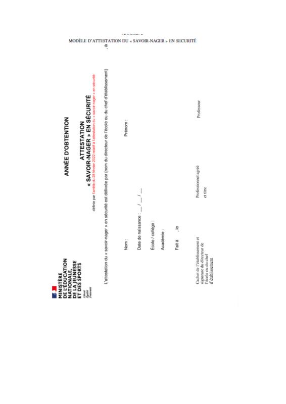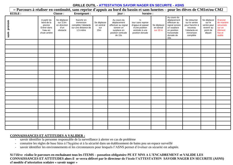 CYCLE 3 : Validation de l'ASNS (Attestation SAVOIR NAGER en Sécurité)