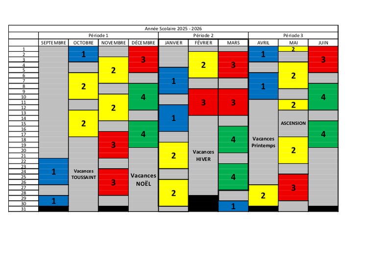 Calendrier Amenagement Scolaire 25 26