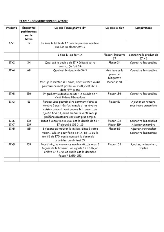 Table 17 Démarche