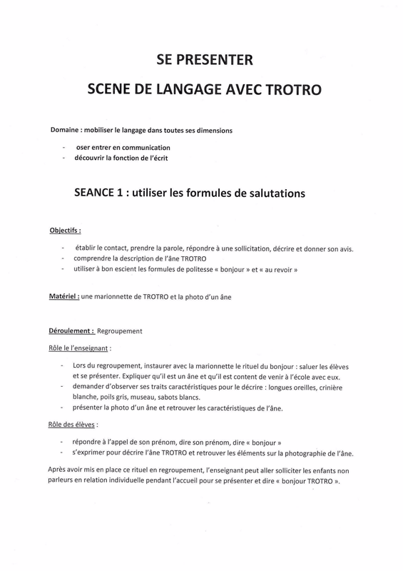 Séance Langage Maternelle Se Présenter Avec Trotro