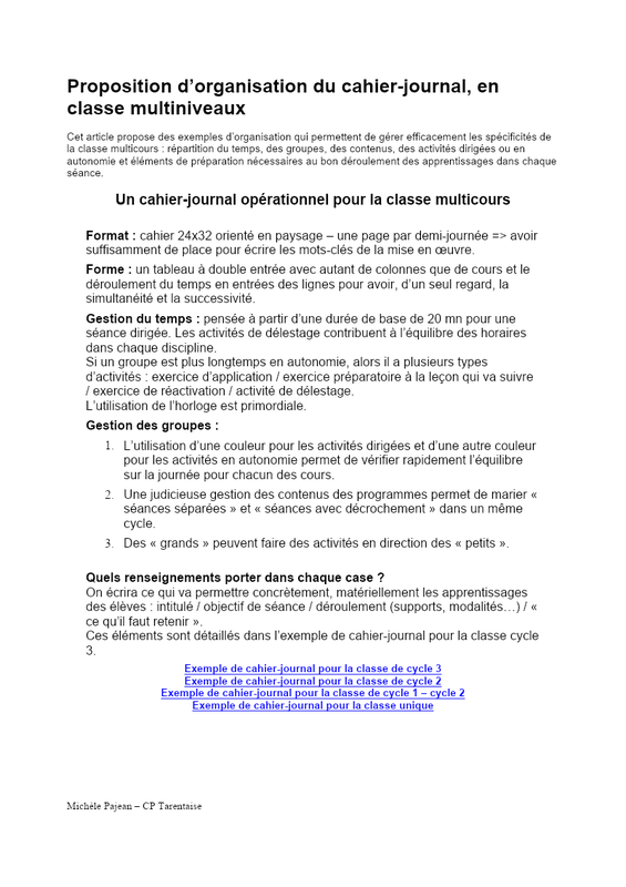 Presentation Cahier Journal Multiniveaux