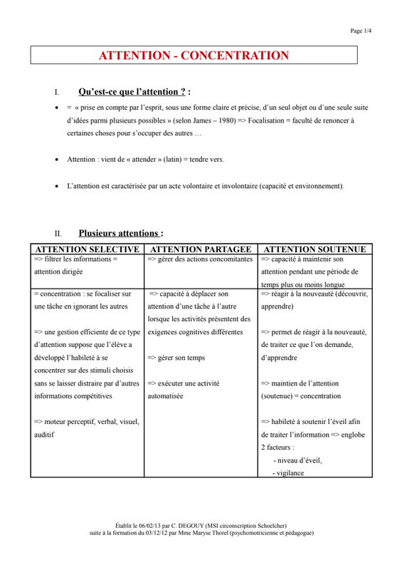 Victoria HEYMAN « Les formes d’attention » 3 principales :