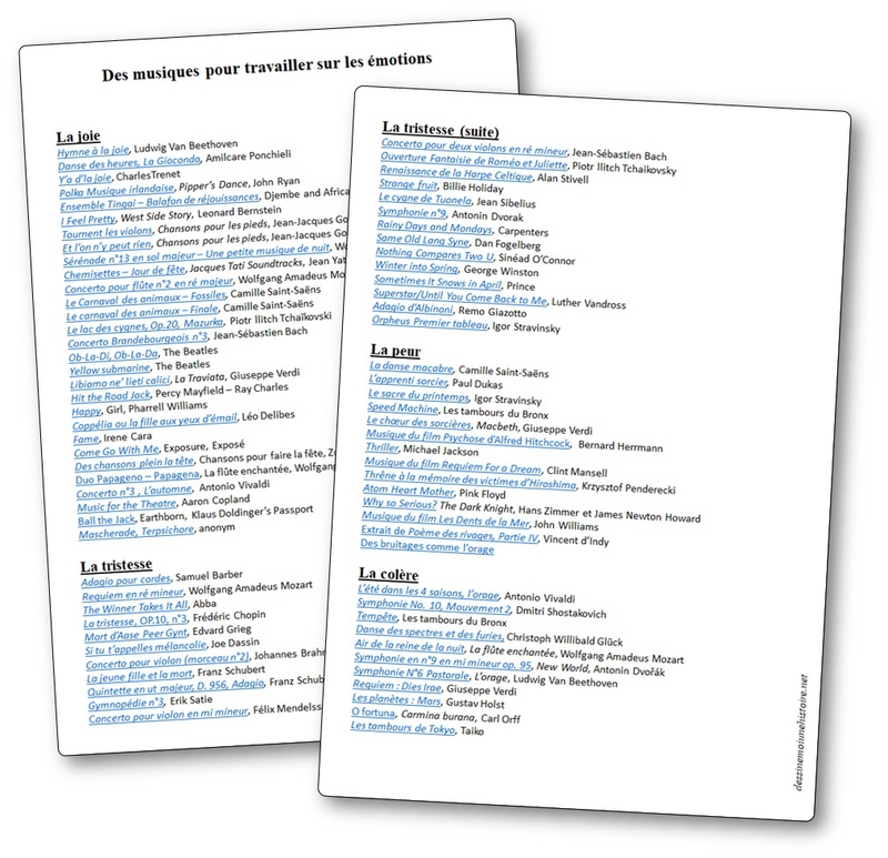 La musique peut constituer une entrée possible pour une séquence d'apprentissage autour des émotions et des sentiments. À partir d'activités d'écoute, les élèves apprendront ainsi à identifier et nommer leurs propres émotions tout en enrichissant le vocabulaire qui s'y rapporte. musique emotions maternelle