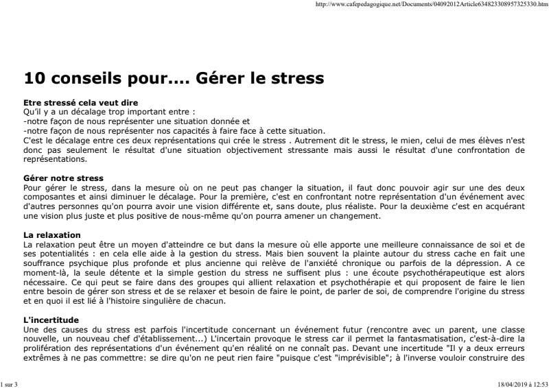 Gérer Le Stress Café Pédagogique
