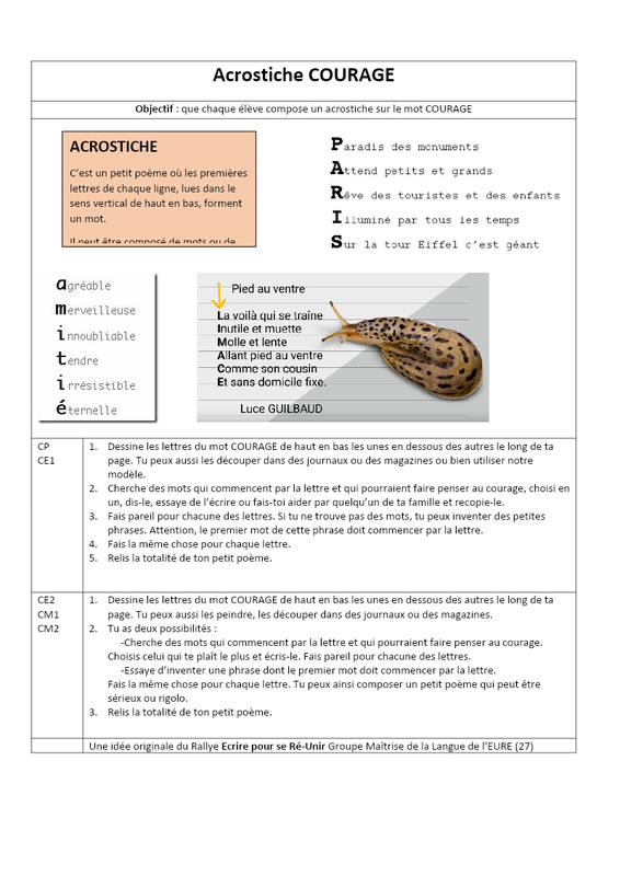 Rallyeecrirere Unir Texte Et Dessin Etre Plein De Courage