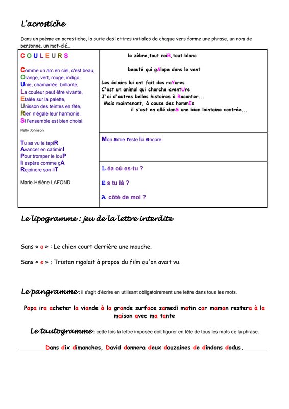 Exemples Oulipo