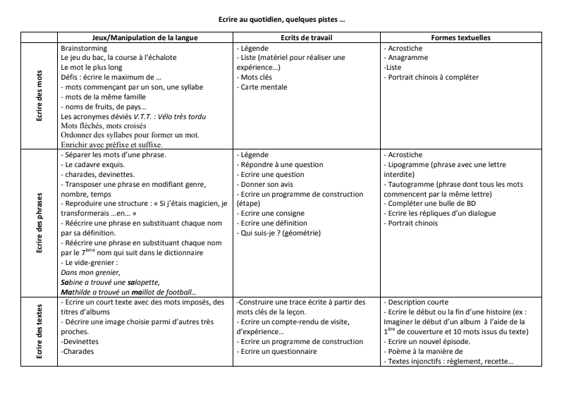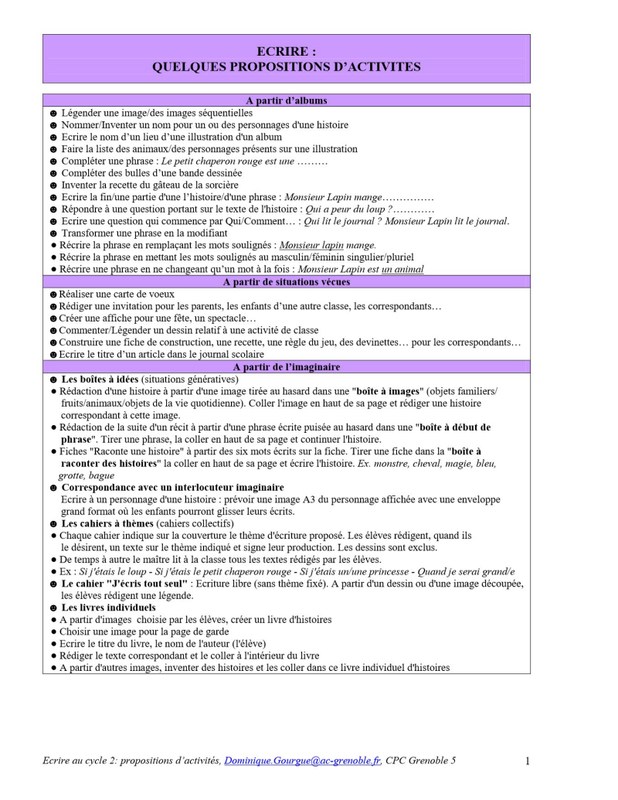 Ecrire Pistes Activités